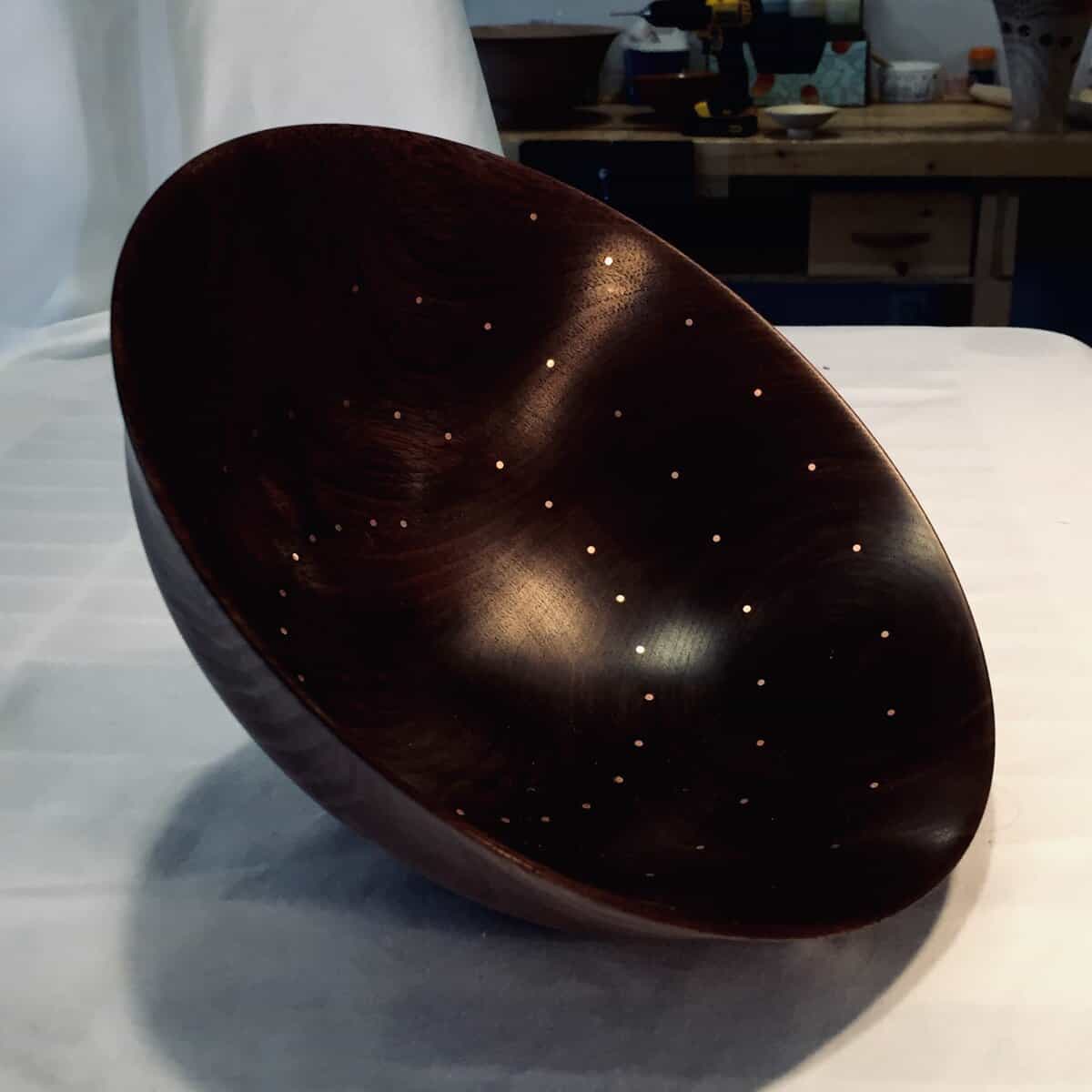 Four different pieces are underway in the studio, using silver birch, English walnut, arbutus and Japanese maple with copper and silver inlays.